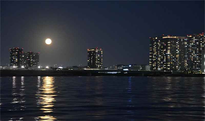 夜色来袭,我们乘坐东京湾游船,在游船上远眺东京湾景色及彩虹桥和东京铁塔,领略东京湾美丽的景色。