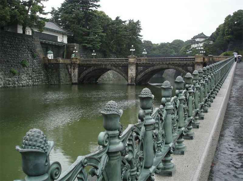 皇居外苑,过去是德川幕府居住的城堡,现在则是日本天皇的官邸。皇居外苑内的二重桥,是东京有名的地标。南侧的二重桥是游客的必到之地。二重桥下的护城河,水平如镜,宫宇苍垂樱倒映其中,显得格外优美,被公认为皇居最美之地。